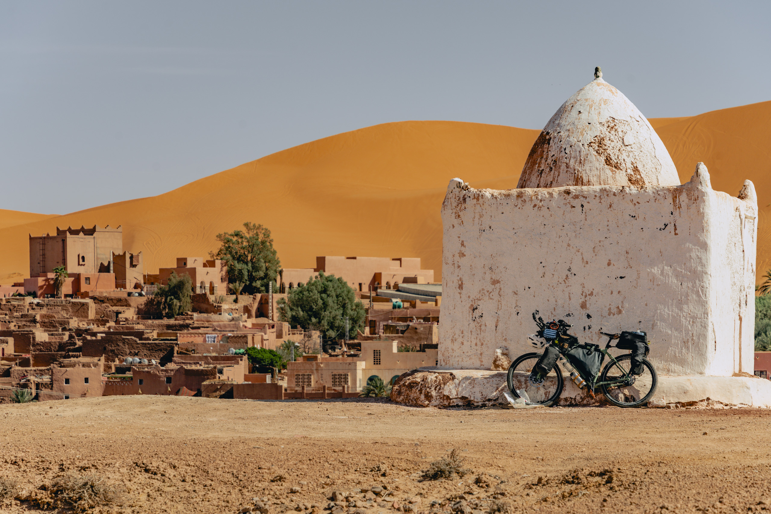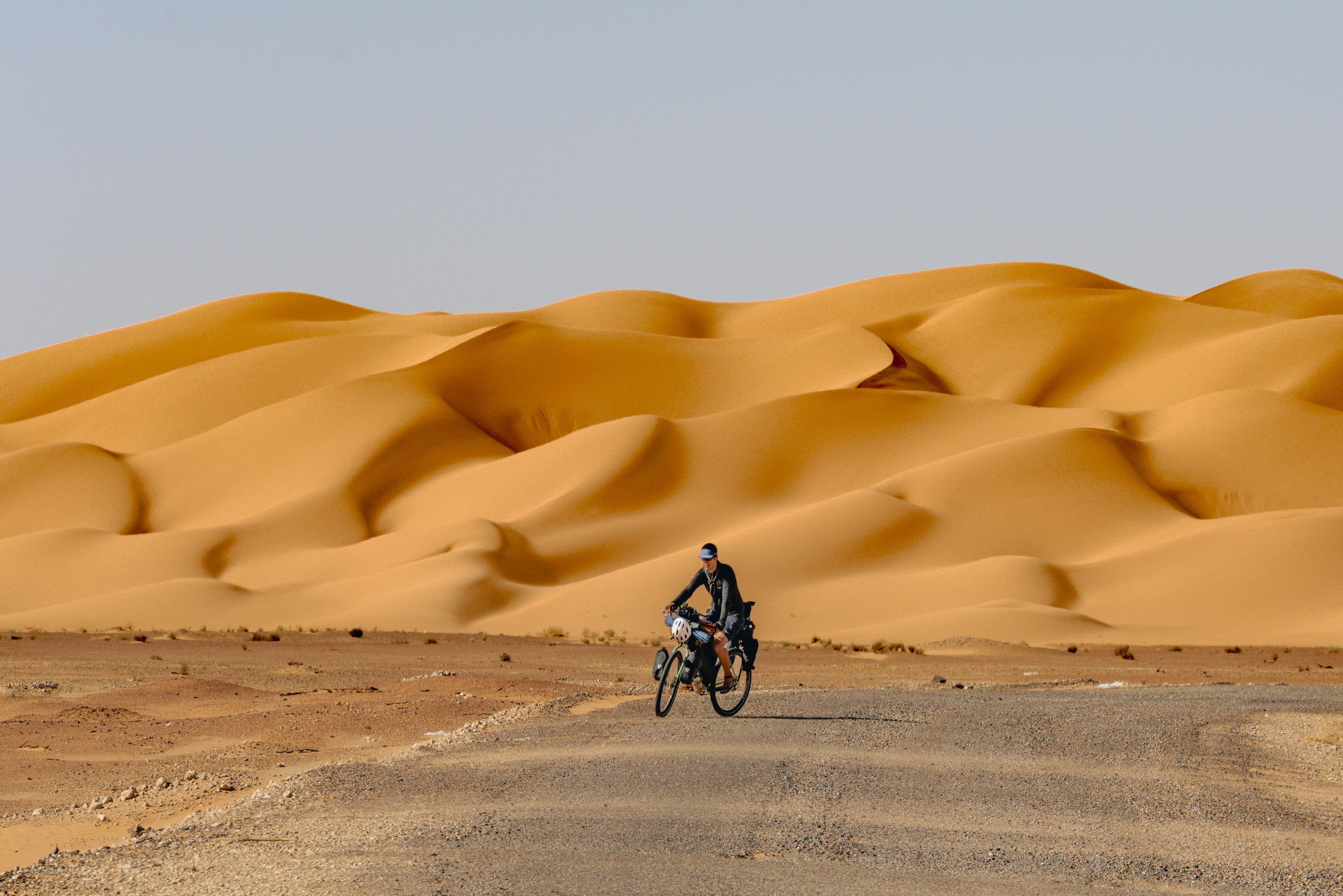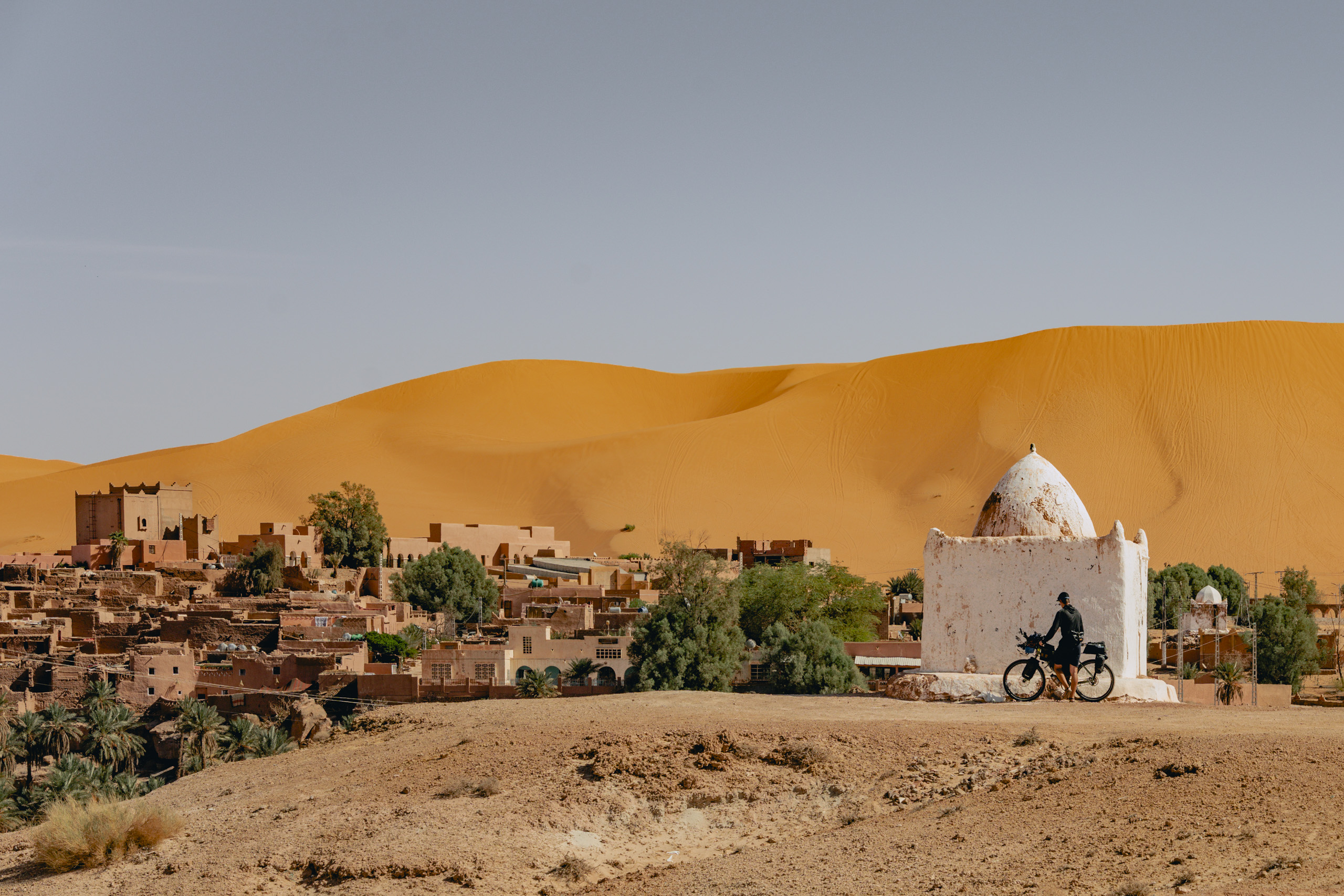 I will be focussing on my route in the Sahara desert, in a region known as the ‘Grand Erg Occidental’ or ‘Great Western Erg’. If you want to cycle on paved roads surrounded by massive sand dunes, this might be the best place in the world for it. The route passes through history-rich places such as Timimoun, which is home to the Berber tribes such as the Zanata, and was once a major stop on Trans-Saharan trade routes. The villages along the Erg (transl. = ‘Sandy Sea’) are incredibly picturesque, quite, yet filled with welcoming locals and often home to historical fortresses (Ksaars). The route also passes through the town of Ain Ouerka, and its multicolored, otherworldly mountainscapes. But it does come with its challenges.